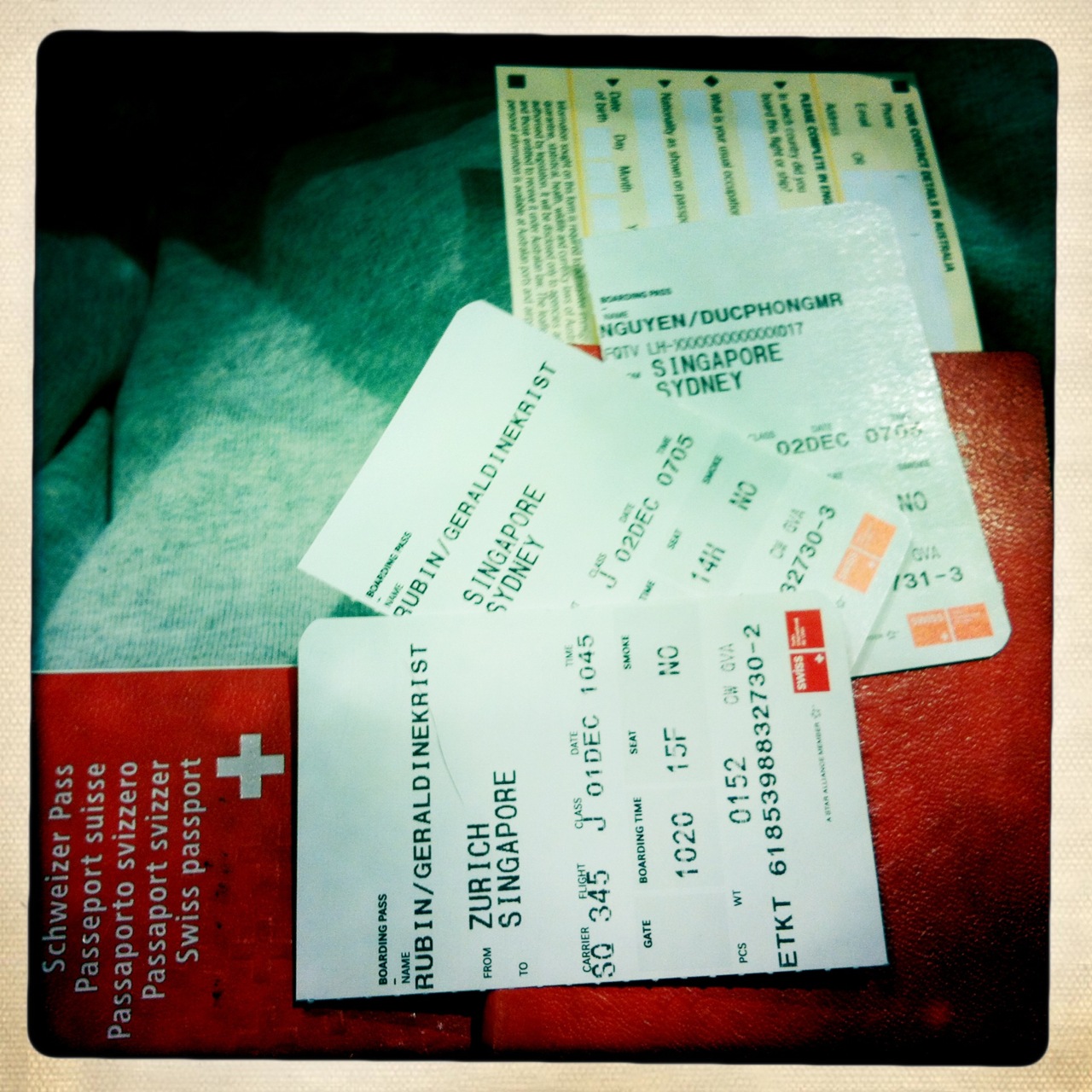 Départ de l’hôtel à Genève: 5h30. Arrivée dans l’appart à Sydney, 10h (heure Suisse). Durée du voyage: 28h30